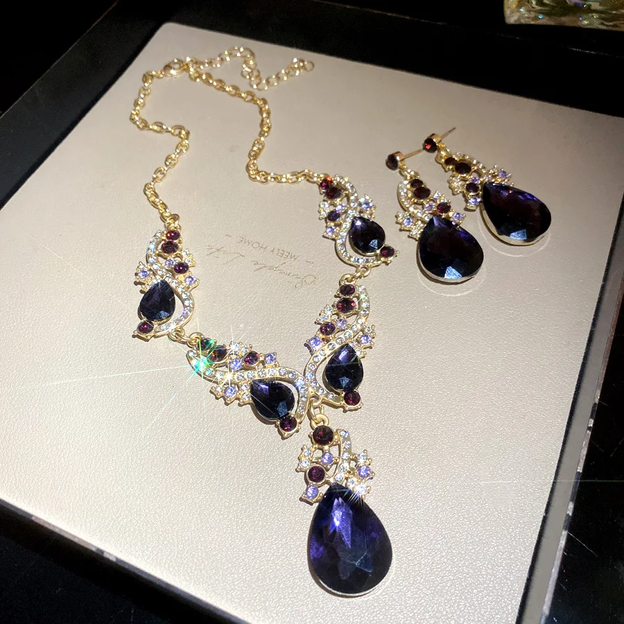 2 Pcs Inlaid Rhinestone Water Drop Necklace Earring Jewelry Sets for Women 2025 Hot Sale Personalized Wedding Bride Accessories