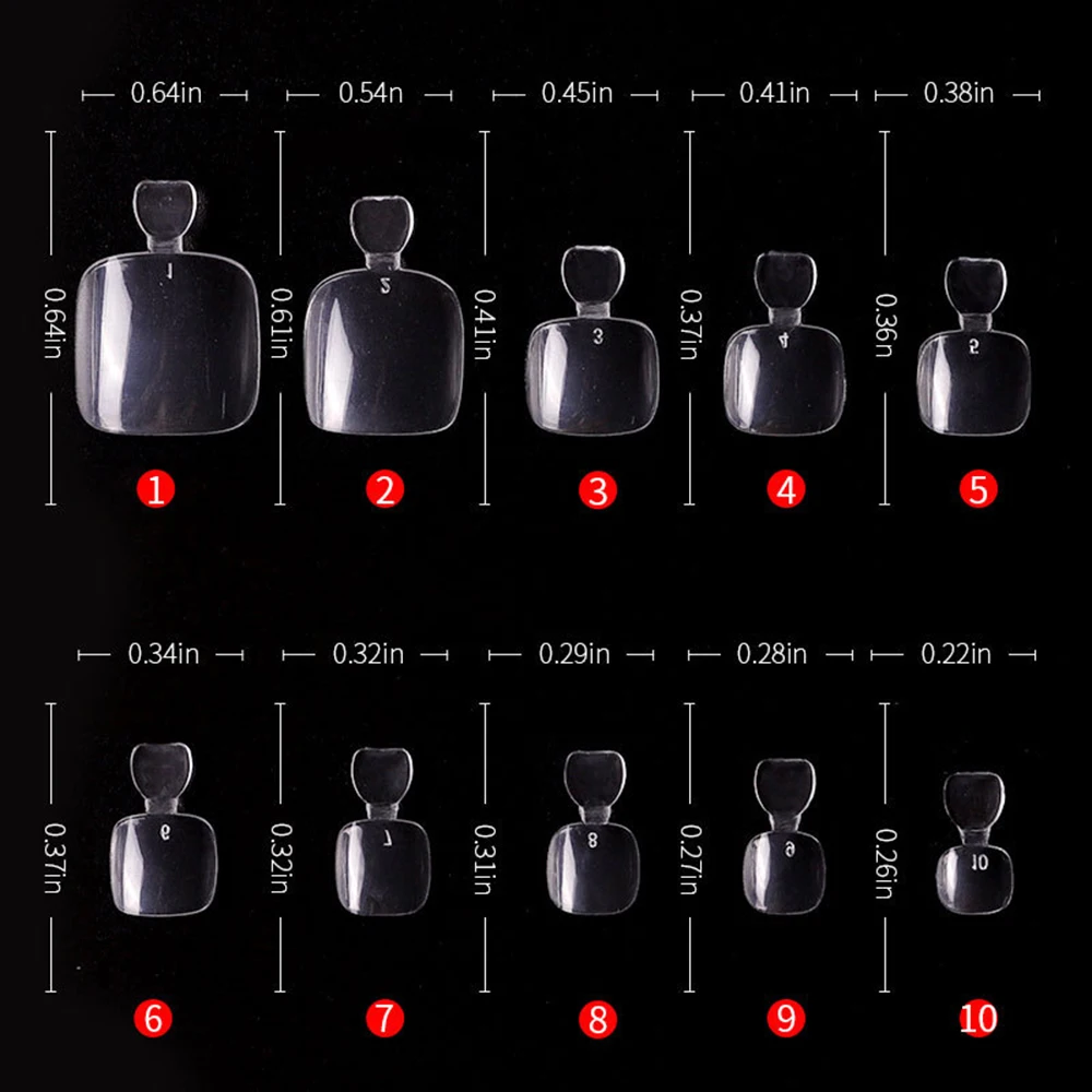500pcs/Bag White/Clear Toenails Tips Summer Short Square False Toe Nail Tips Natural 10 Size Mix Manicure Foot Press on Tips