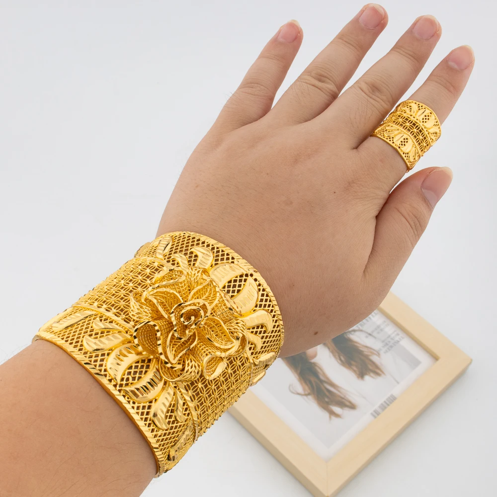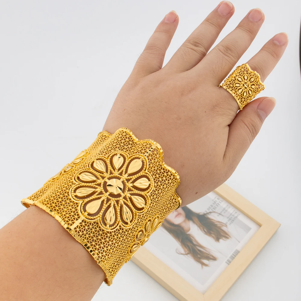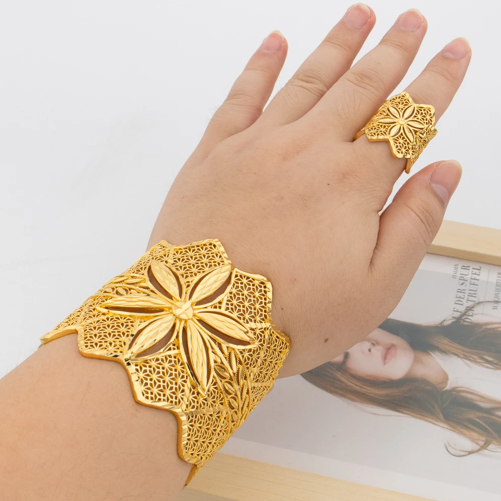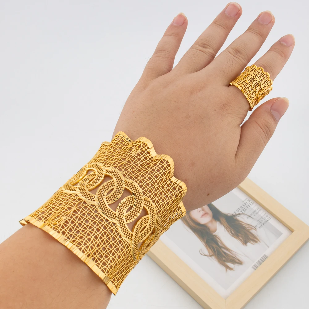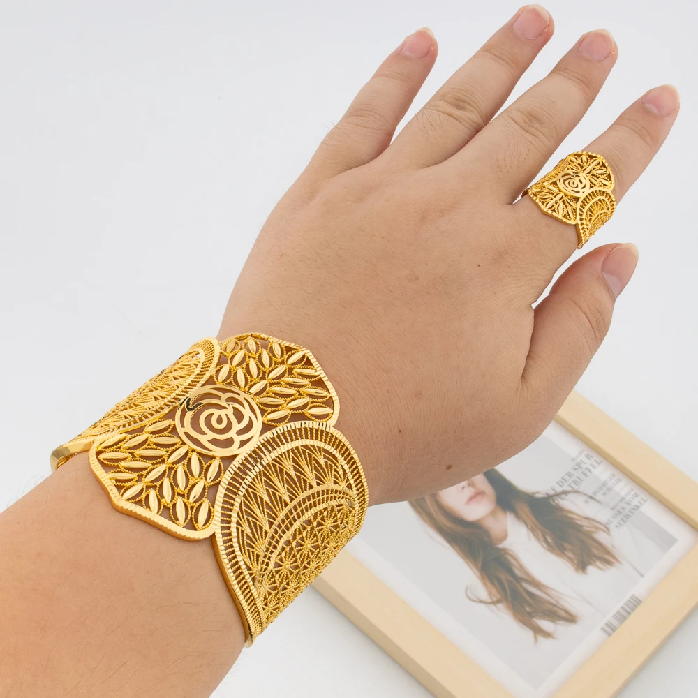 African Bangle and Ring Jewelry Set for Women Large Size Cuff Bracelet and Ring Set for Nigerian Anniversary Hand Bangle Jewelry