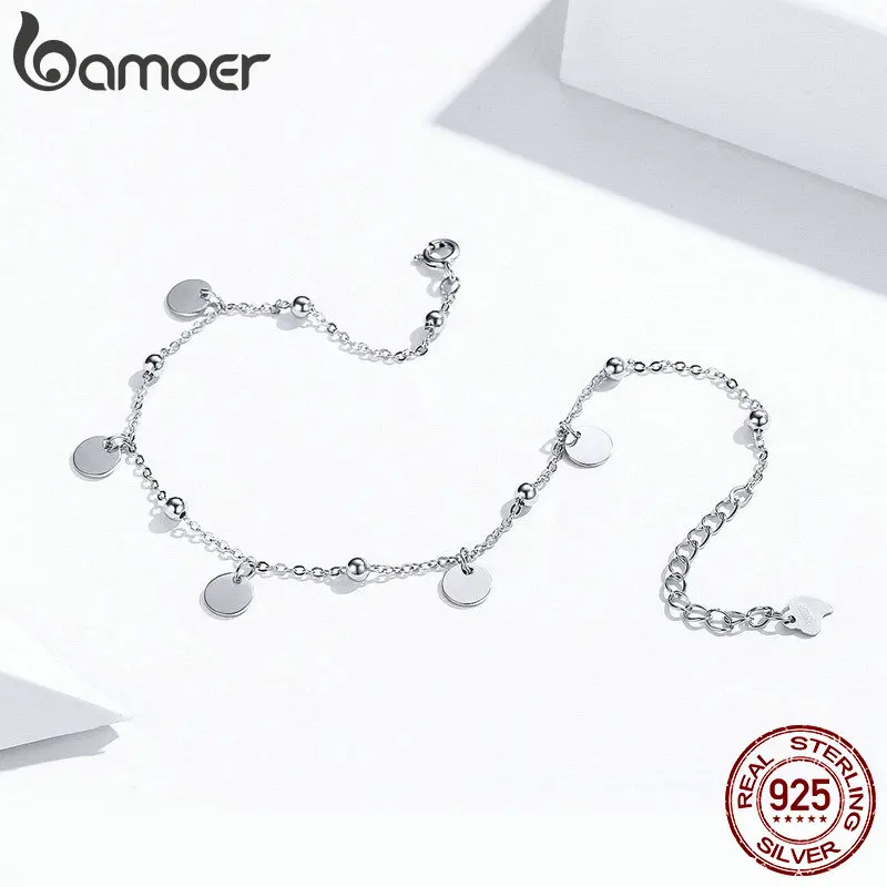 bamoer Silver Beads Anklets 925 Sterling Silver Geometric Minimalist Summer Fashion Foot Jewelry Bracelet for Ankle SCT011