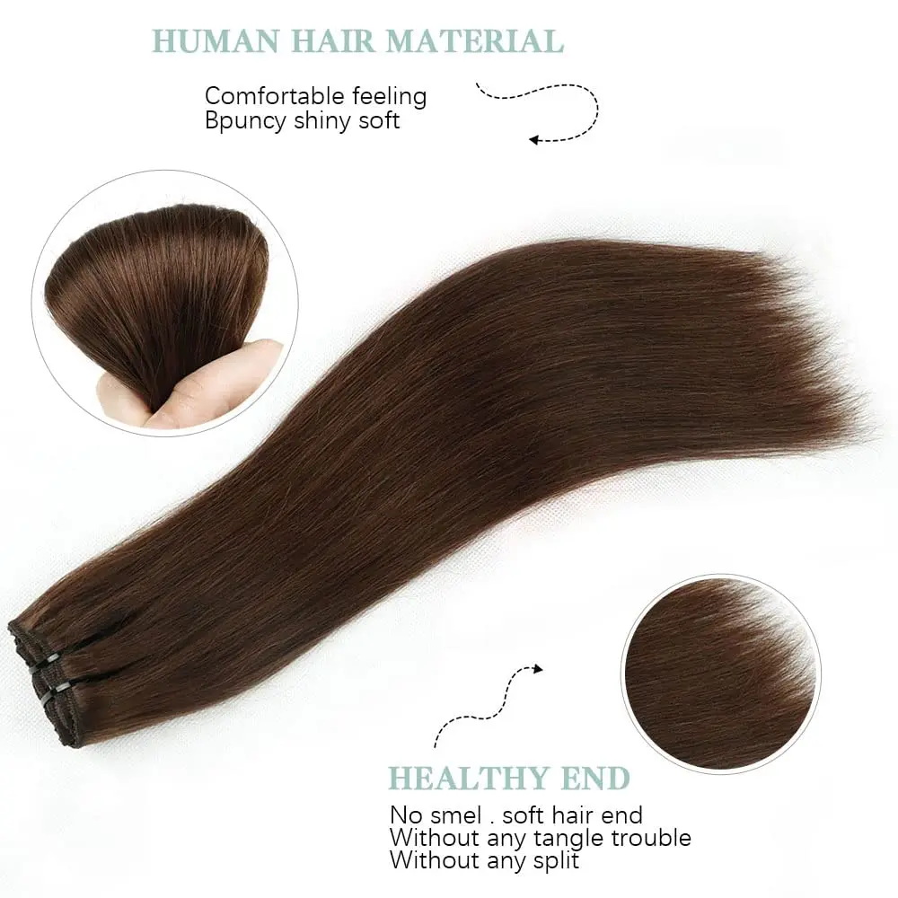 Brown Clip In Hair Extensions Real Human Hair Brazilian For Women Straight Hair 8pcs 120gram Remy Human Hair Thick Silky Soft