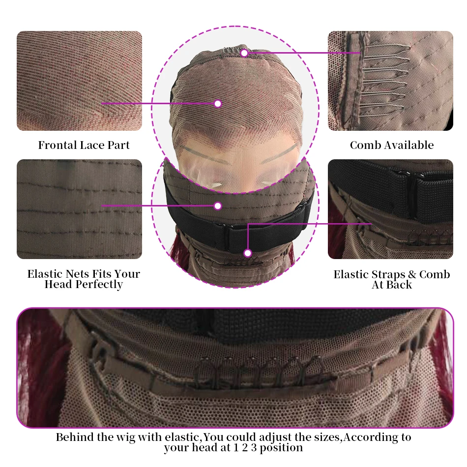 ShopShopCosmeticsWigs & Hair ExtensionsBurgundy 99J Color Short Bob Wigs Loose Wave 13×4 HD Lace Front Wig Body Wave Bob Wigs 100% Human Remy Hair Lace Wigs For Women