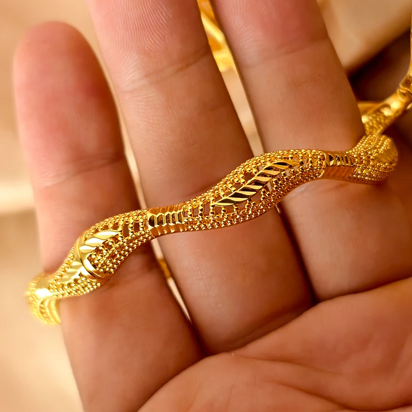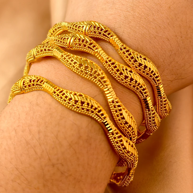 Dubai 24k Gold Color Luxury Bangles for Women Arabic New Anniversary Wedding Party Gifts Original Bracelets