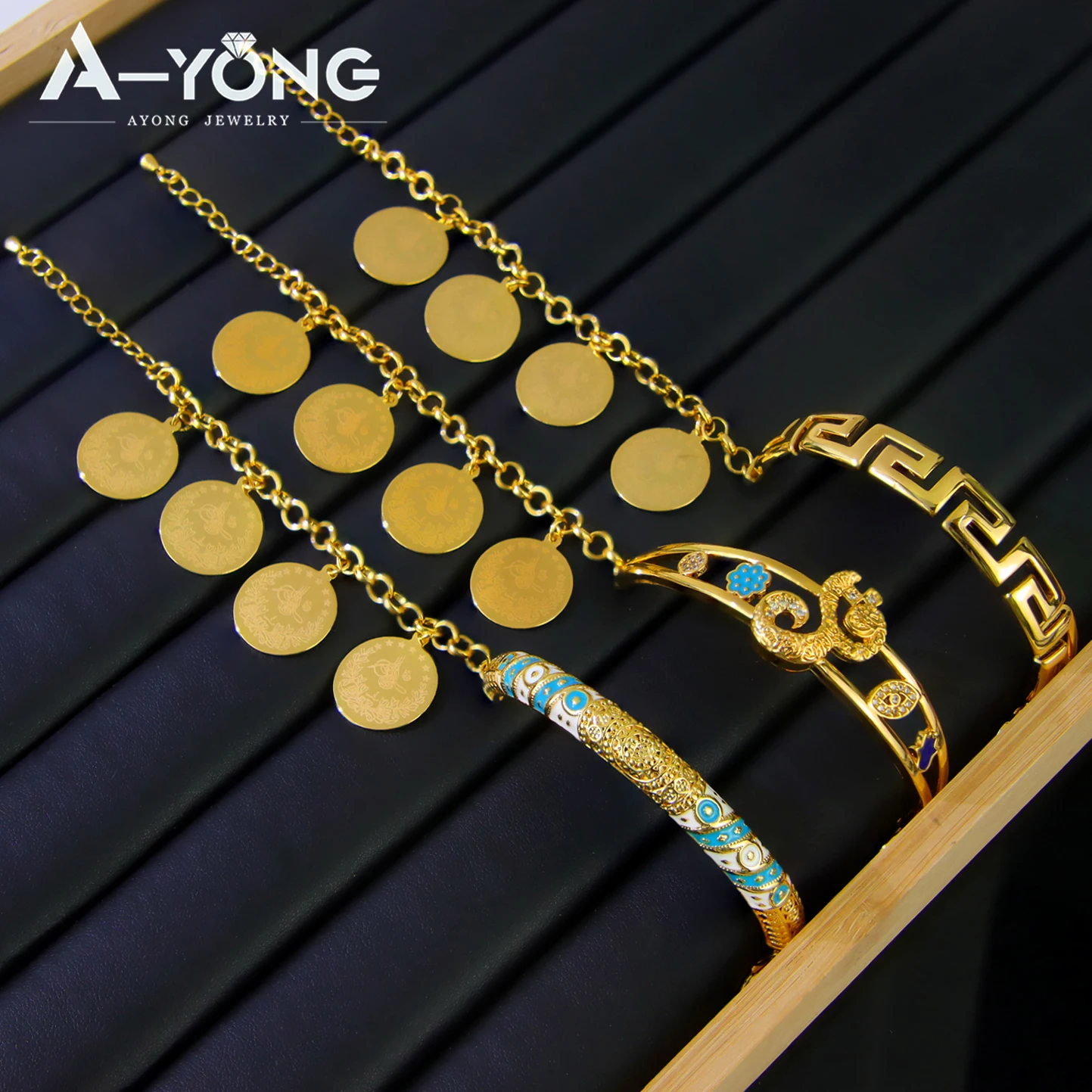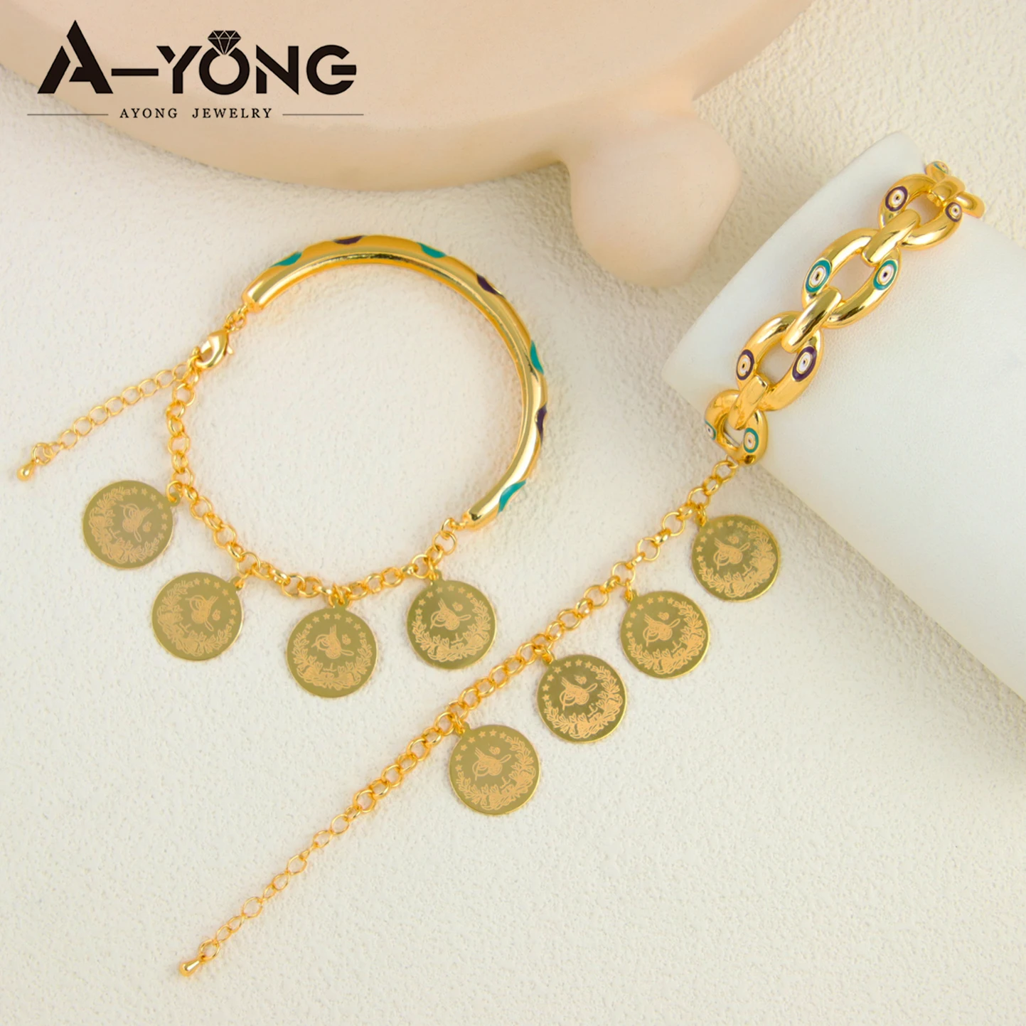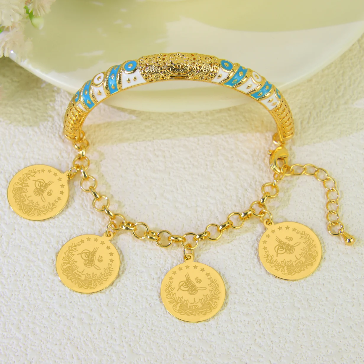 Fashion Arabic Coins Charm Bracelet 21k Gold Plated Dubai Muslim Hip Hop Lucky Bangles Middle Eastern Women Party Jewelry