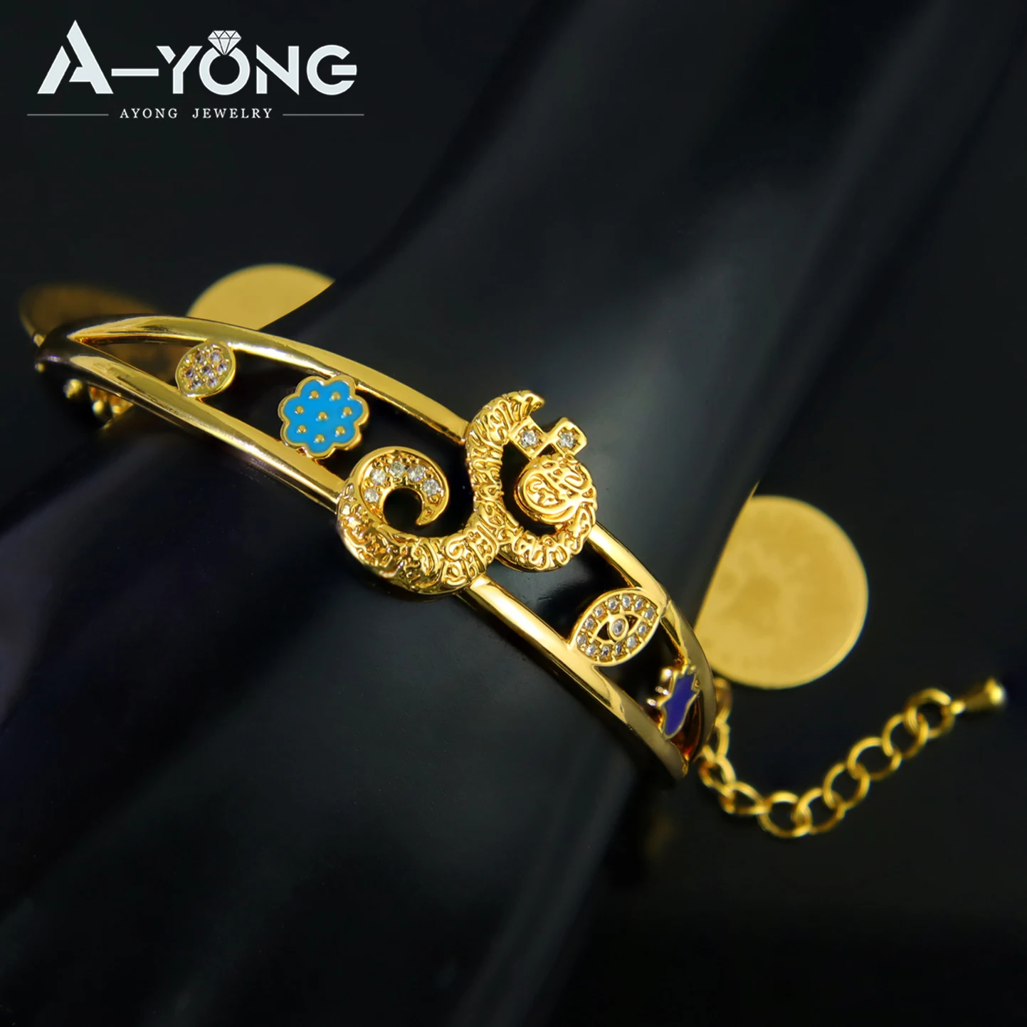 ethiopian hawaiian jewelry bangle 24k gold bracelet for women flower bangle african gifts free shipping birthday gifts