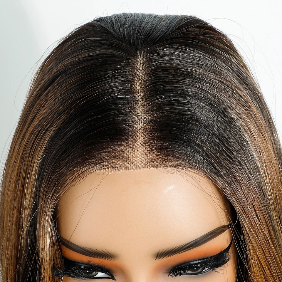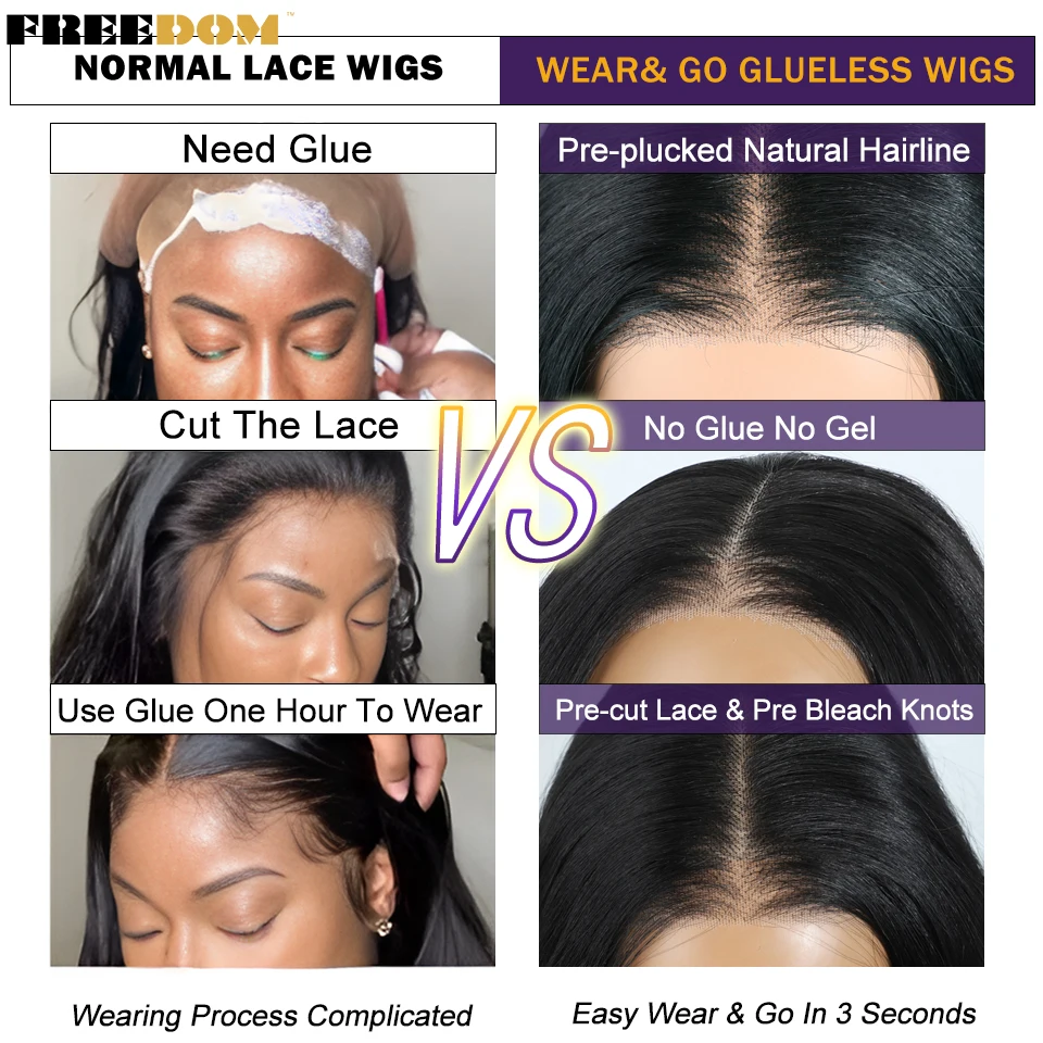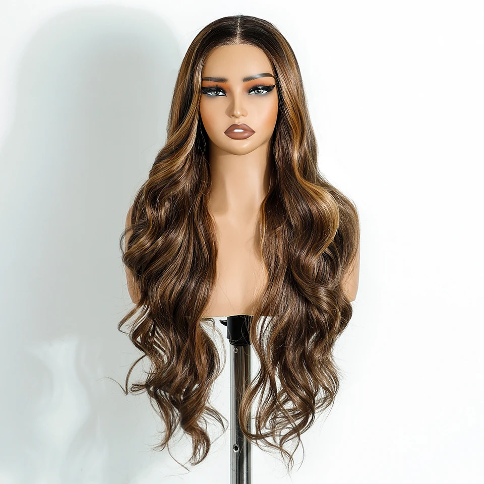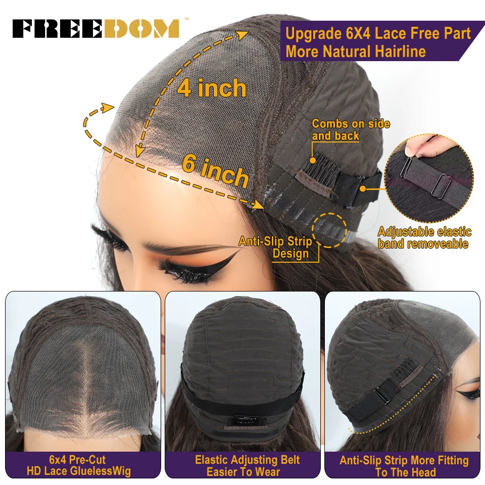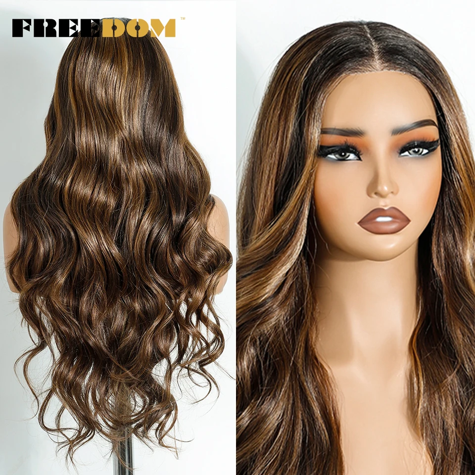 ShopShopCosmeticsWigs & Hair ExtensionsFREEDOM Body Wave Synthetic Lace Front Wigs For Woman 6″x4″ Wear and Go Glueless Wig Ombre Brown Pre Plucked Pre Cut Lace Wigs