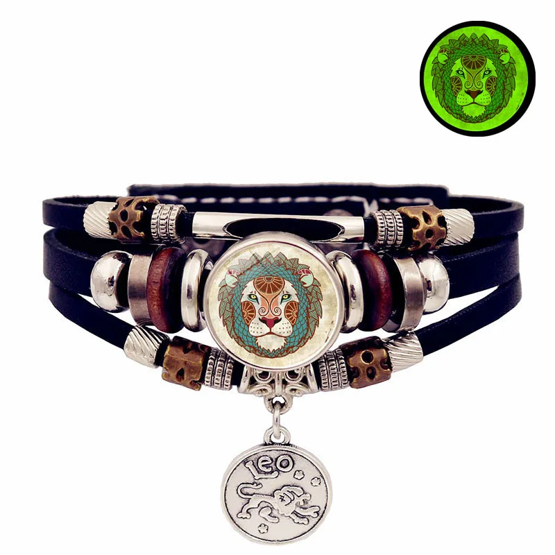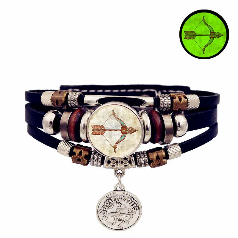 Retro Punk Leather Bracelet Glow Twelve Constellations Button Bracelet for Male and Female Students Couple Bracelet Jewelry