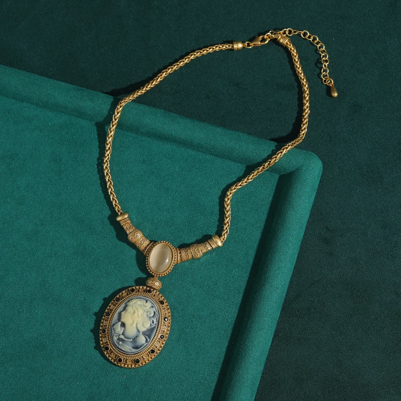 Vintage Cameo Jewelry Sets Natural Stone Oval Relief Portrait Of A Beauty Woman Pendants Retro Outfits Luxury Designs 2025 Trend